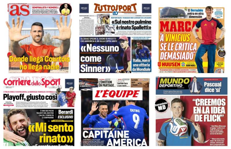 أبرز عناوين أغلفة الصحف الرياضية العالمية: “مبابي يقود فرنسا للتأهل لكأس العالم 2026”